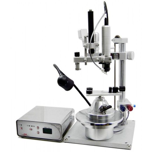 Поставляется в комплекте с электрическим микромотором (оснащается держателями диаметром 2,35 - 3 мм и 1,6 мм), электронным цифровым блоком управления с регулируемой скоростью, электрической педалью, фиксируемым держателем модели, системой освещения и встроенным шпинделем для сборки.