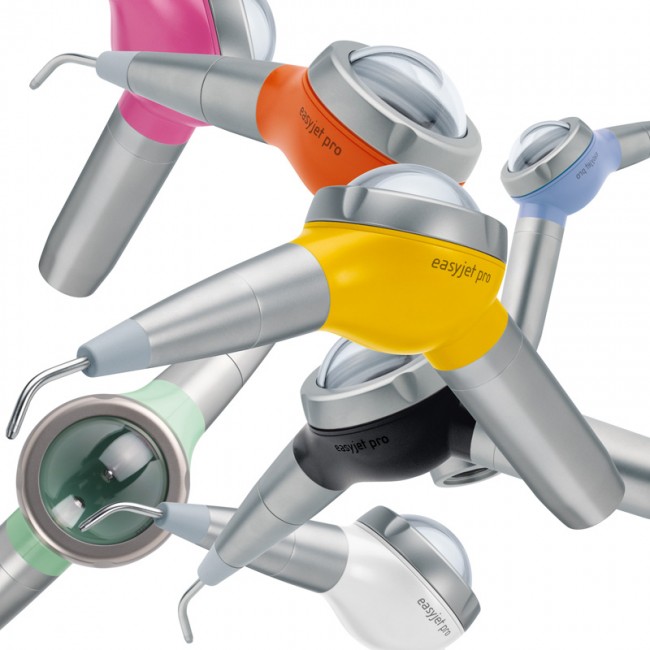 EasyJet Pro — устройство для ежедневного использования, оснащено легко открываемой крышкой резервуара для порошка и легко фиксируемым поворотным соплом наконечника. Полностью стерилизуется, имеет переднюю силиконовую накладку. Продуманное распределение порошка в резервуаре и новый дизайн сопла обеспечивают постоянный и мощный поток порошка.