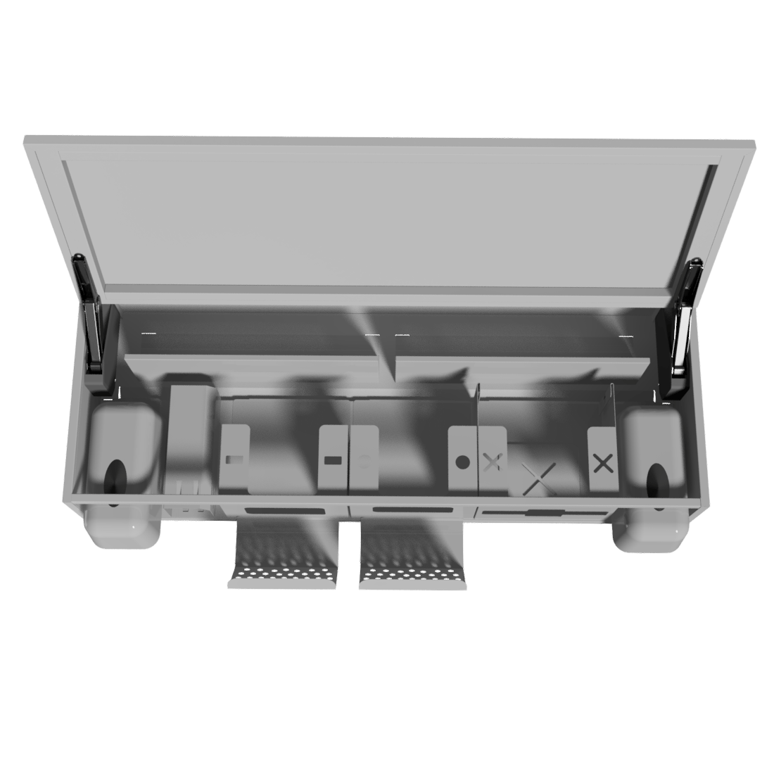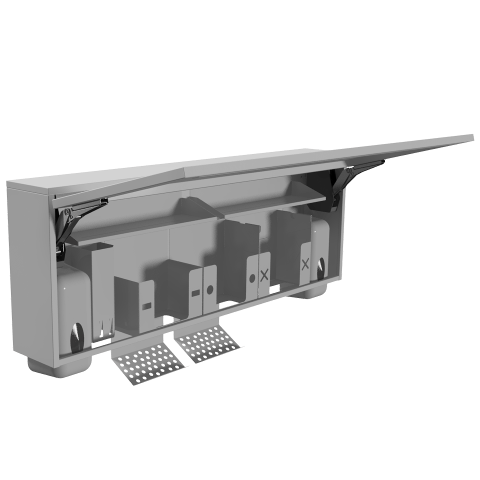 Оснащён шестью съёмными модулями, которые можно заменить, убрать или переставить по вашему усмотрению. Содержимое каждого модуля можно извлечь без открывания дверцы.