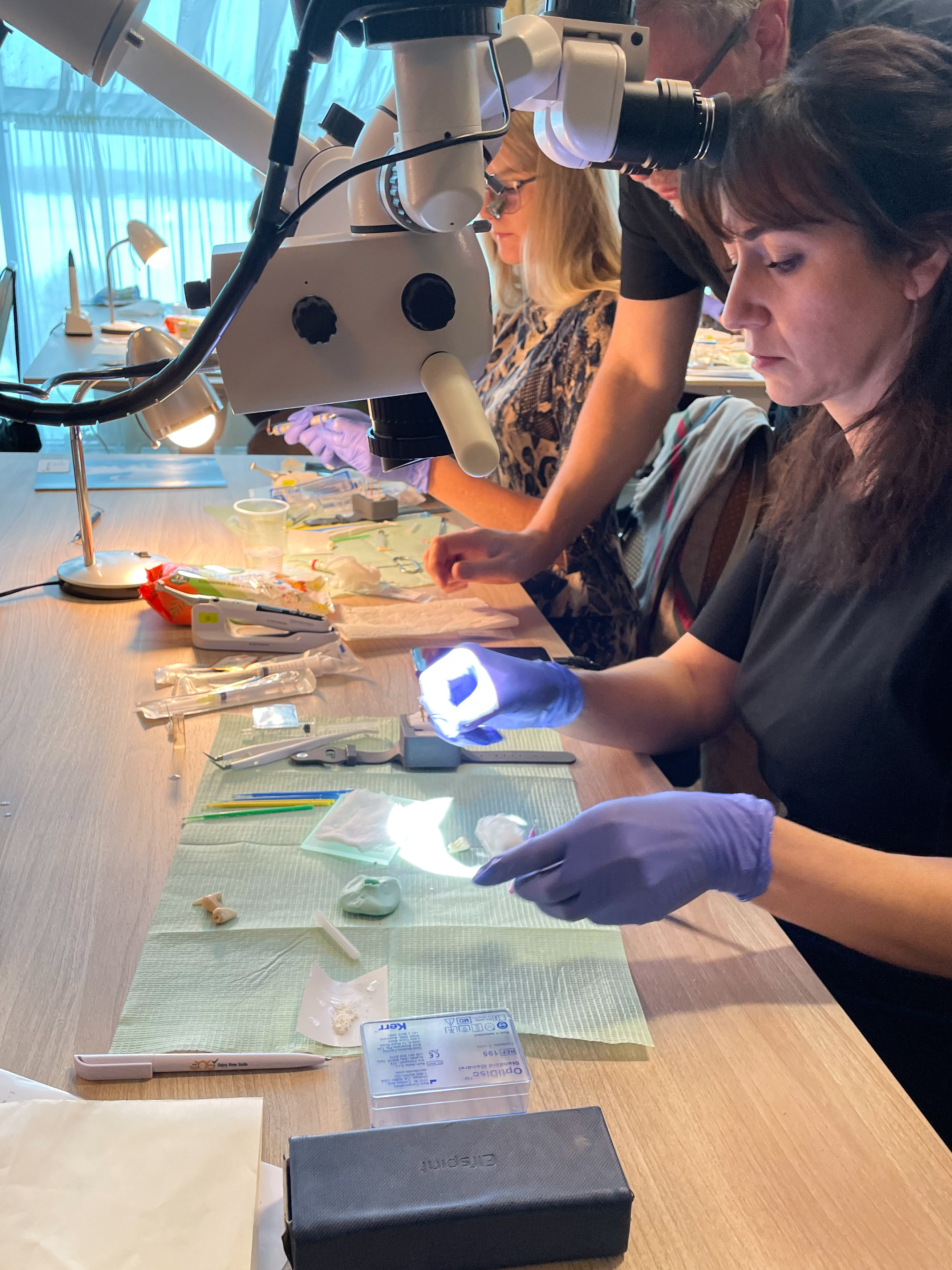 Подробнее об этом рассказывал Алексей Болячин на своём курсе «Перелечивание перелечиваний», а его участники отрабатывали полученные навыки на микроскопах компании GREEN DENT.